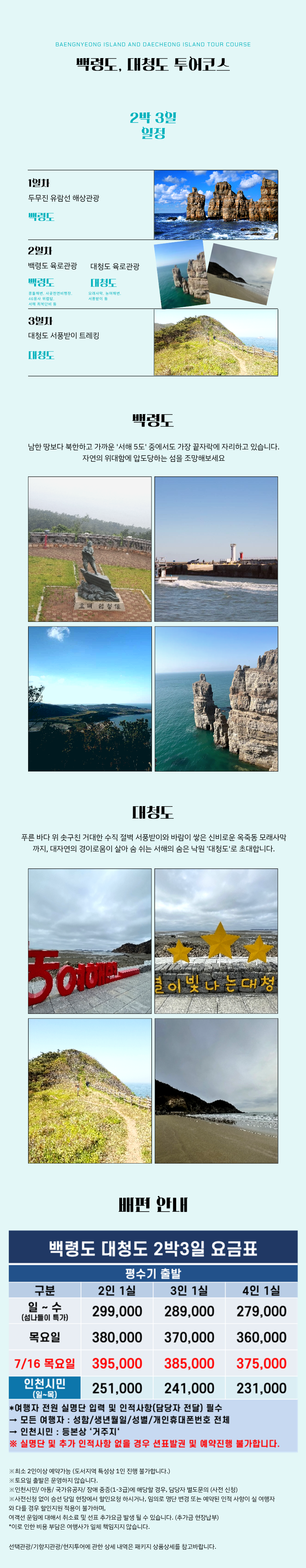 #서해5도 섬나들이 특가(주중 일~수 출발) : 특가날짜 예약자 전원 신분증상 주소지를 추가로 알려주셔야 합니다.